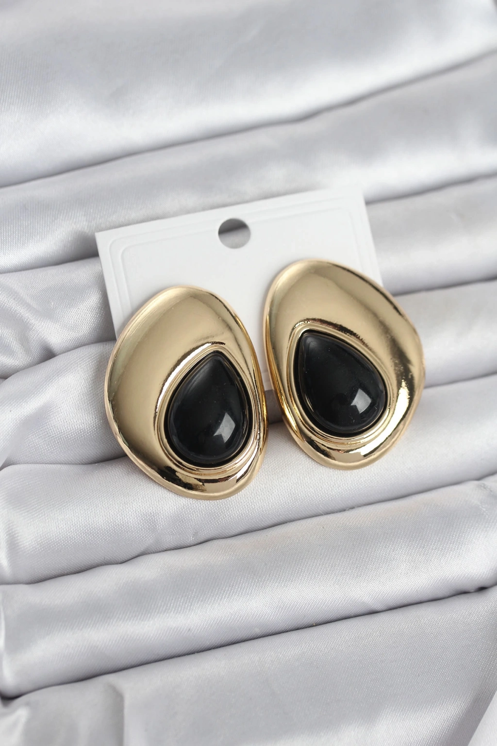Pirinç Gold Renk Siyah Taşlı Damla Model Vintage Kadın Küpe