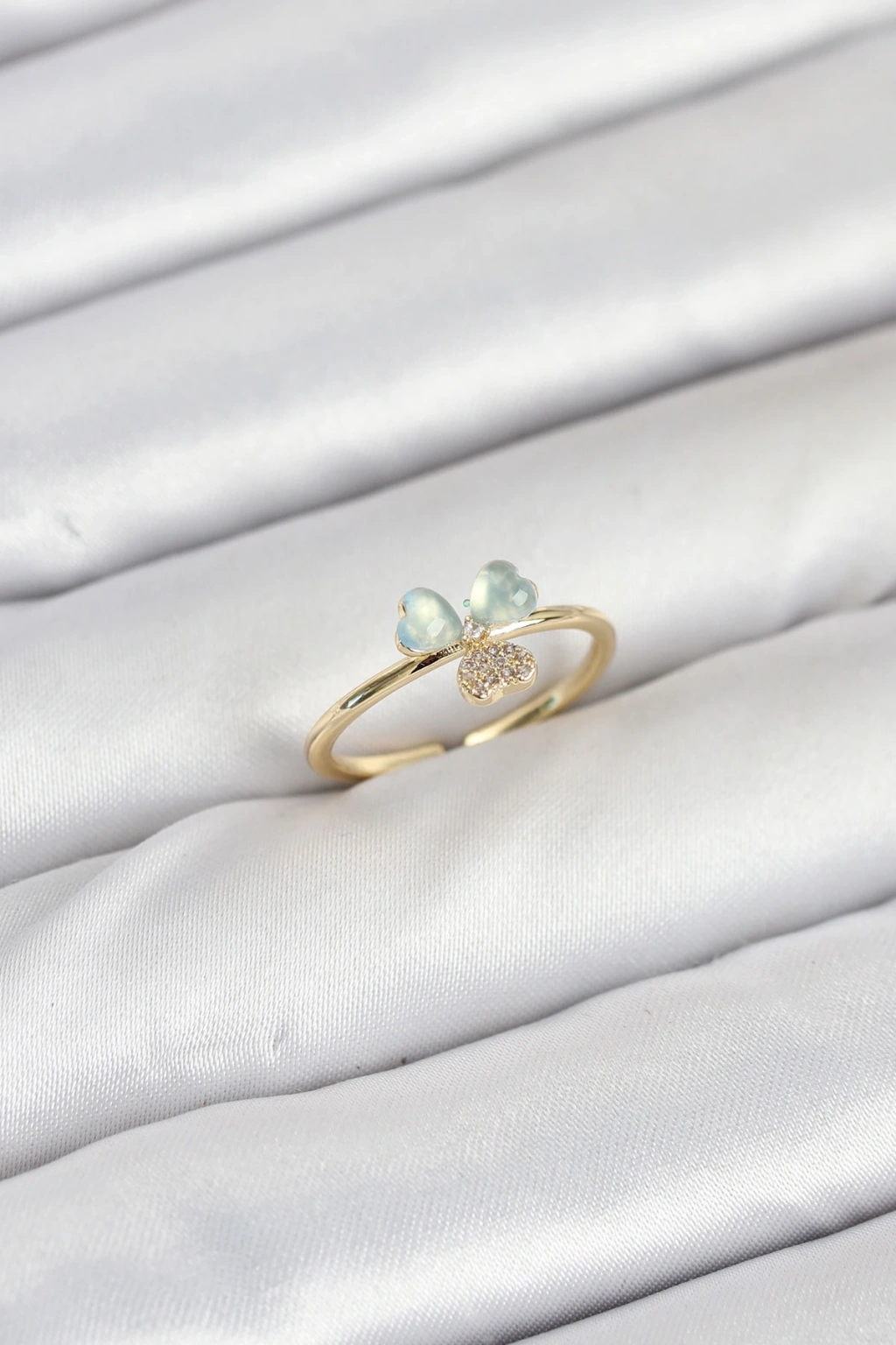 Pirinç Gold Renk Yonca Model Kadın Yüzük