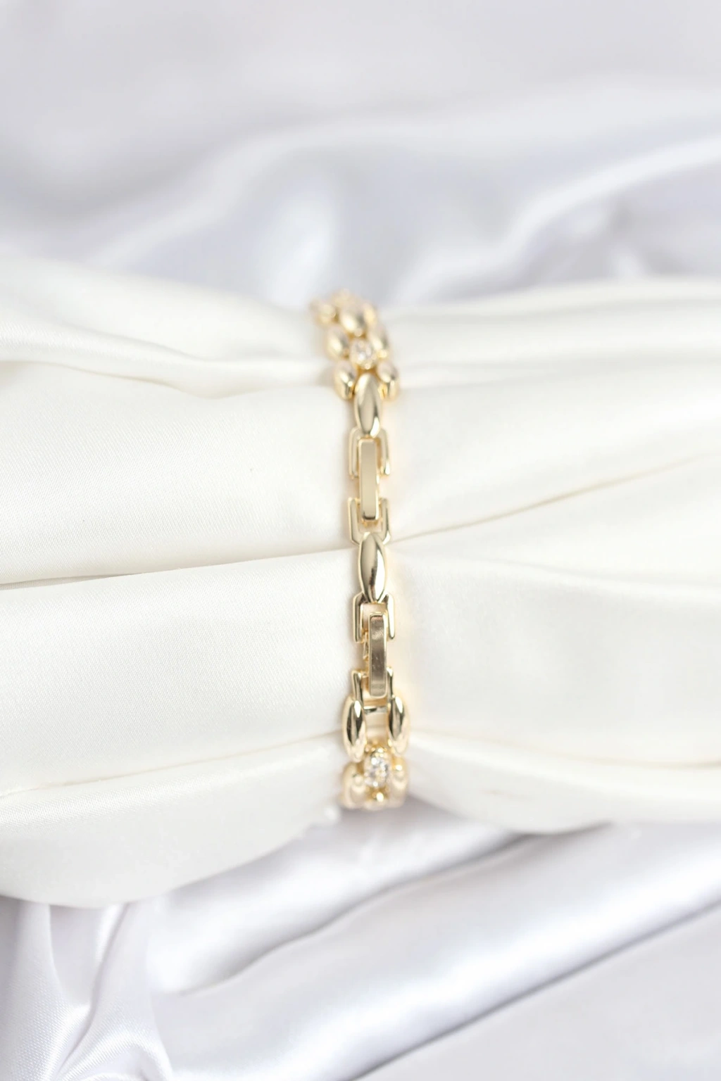 Pirinç Gold Renk Zincir Model Zirkon Taşlı Kadın Bileklik