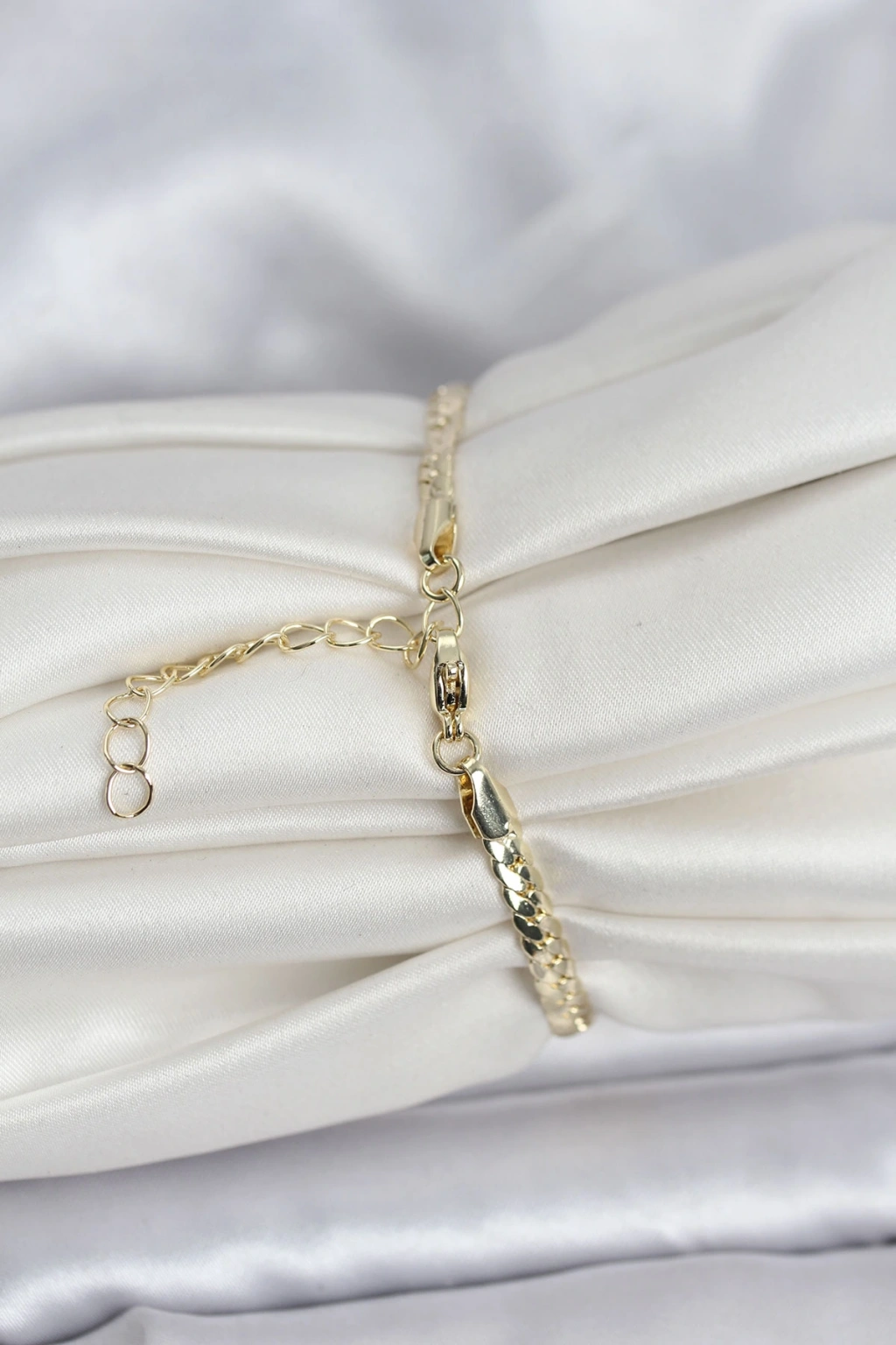 Pirinç Gold Renk Zirkon Taşlı Kadın Bileklik