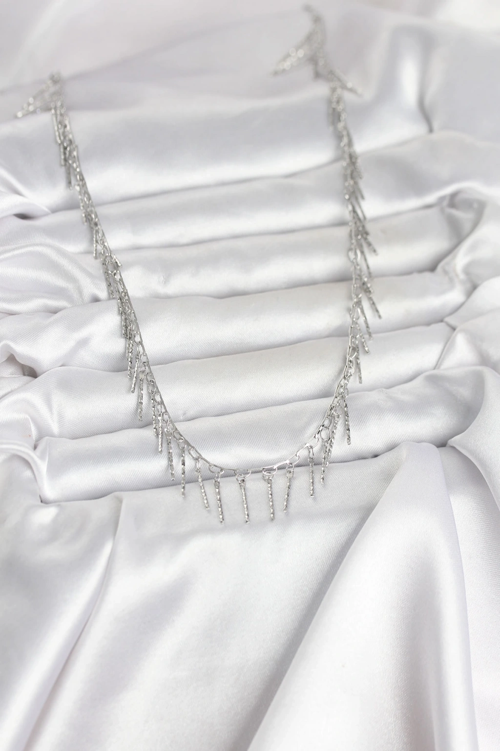 Pirinç Gümüş Renk Saçaklı Model Kadın Kolye