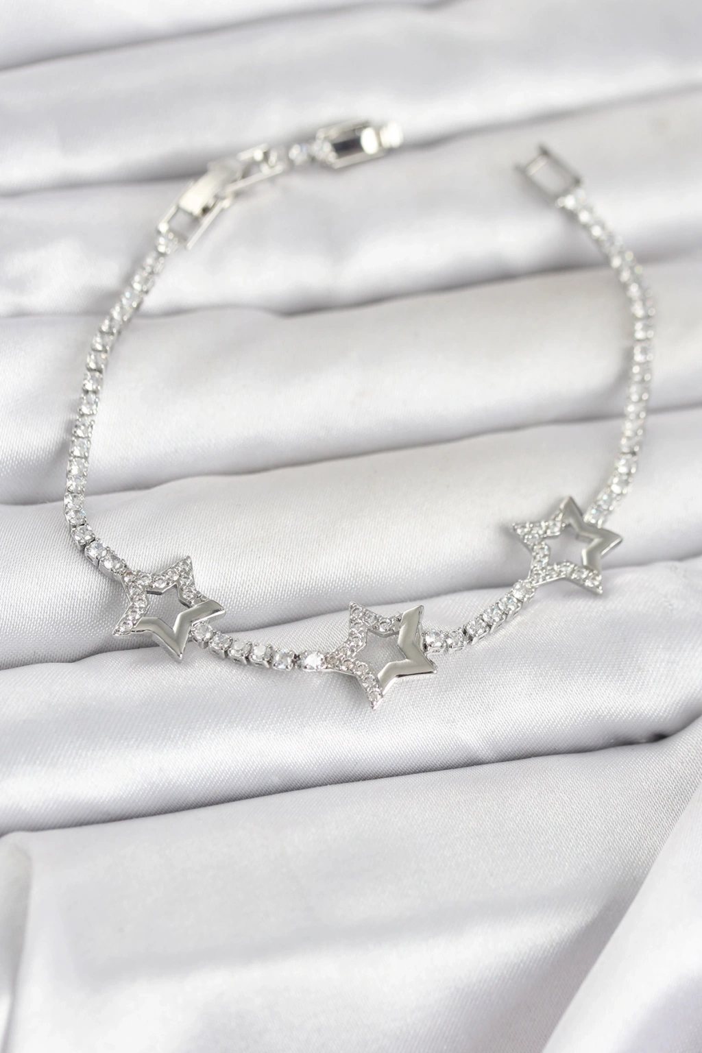 Pirinç Gümüş Renk Yıldız Model Zirkon Taşlı Su Yolu Kadın Bileklik