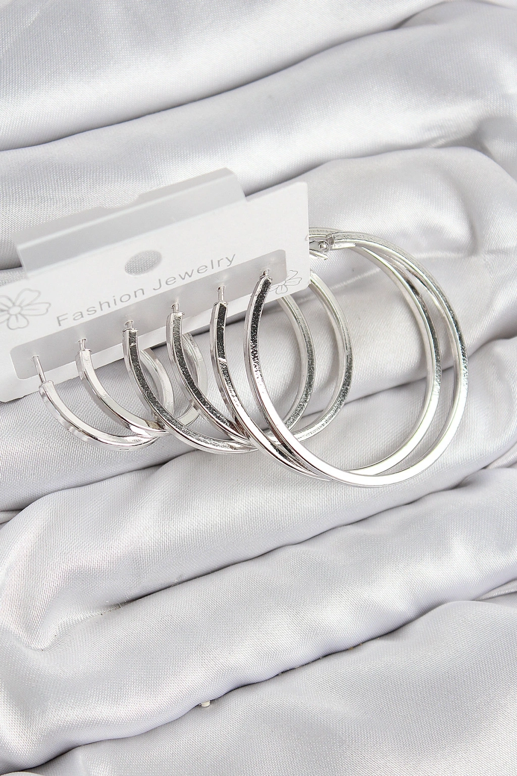 Pirinç Halka Model Gümüş Renk Kadın Set Küpe