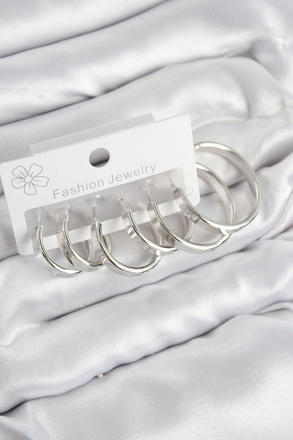 Pirinç Halka Model Gümüş Renk Kadın Set Küpe