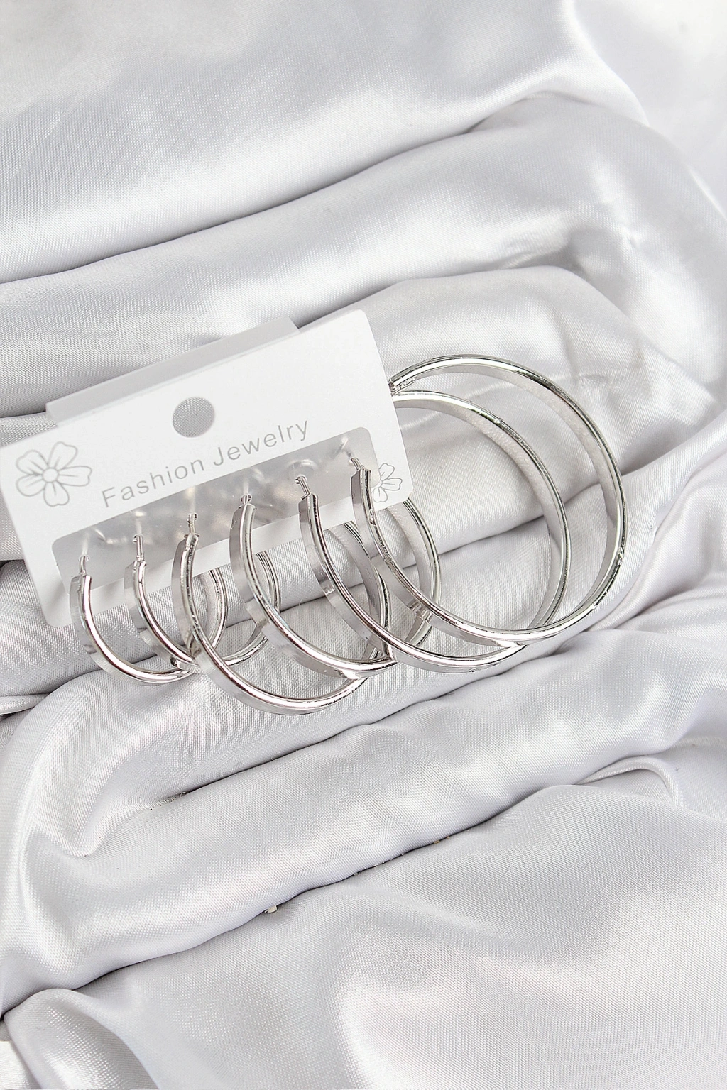 Pirinç Halka Model Gümüş Renk Kadın Set Küpe