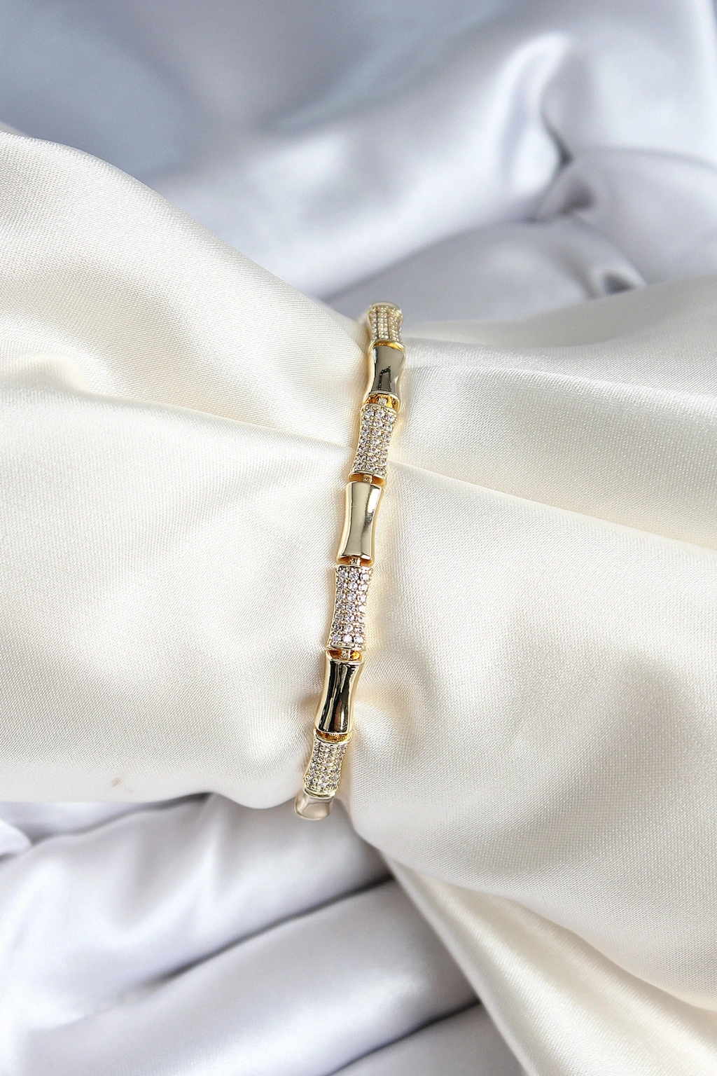 Pirinç Kemik Model Zirkon Taşlı Gold Renk Kadın Bileklik