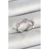 Pirinç Sıralı Kalp Figürlü Zirkon Taşlı Gümüş Renk Ayarlanabilir Kadın Yüzük