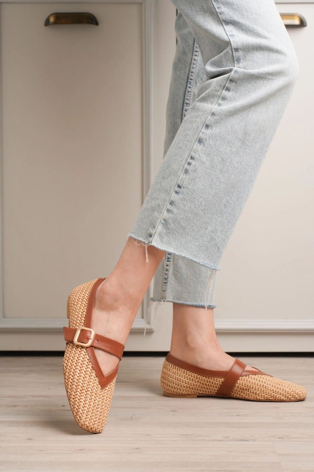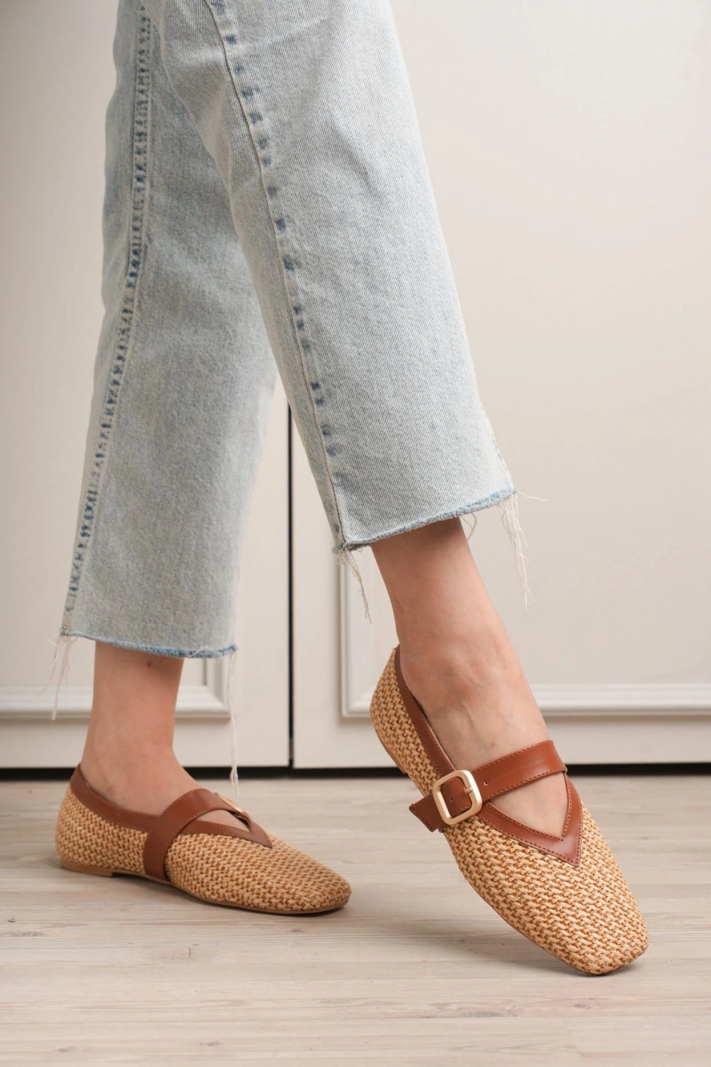 Ponti Taba Cilt Hasır Detaylı Babet Ayakkabı