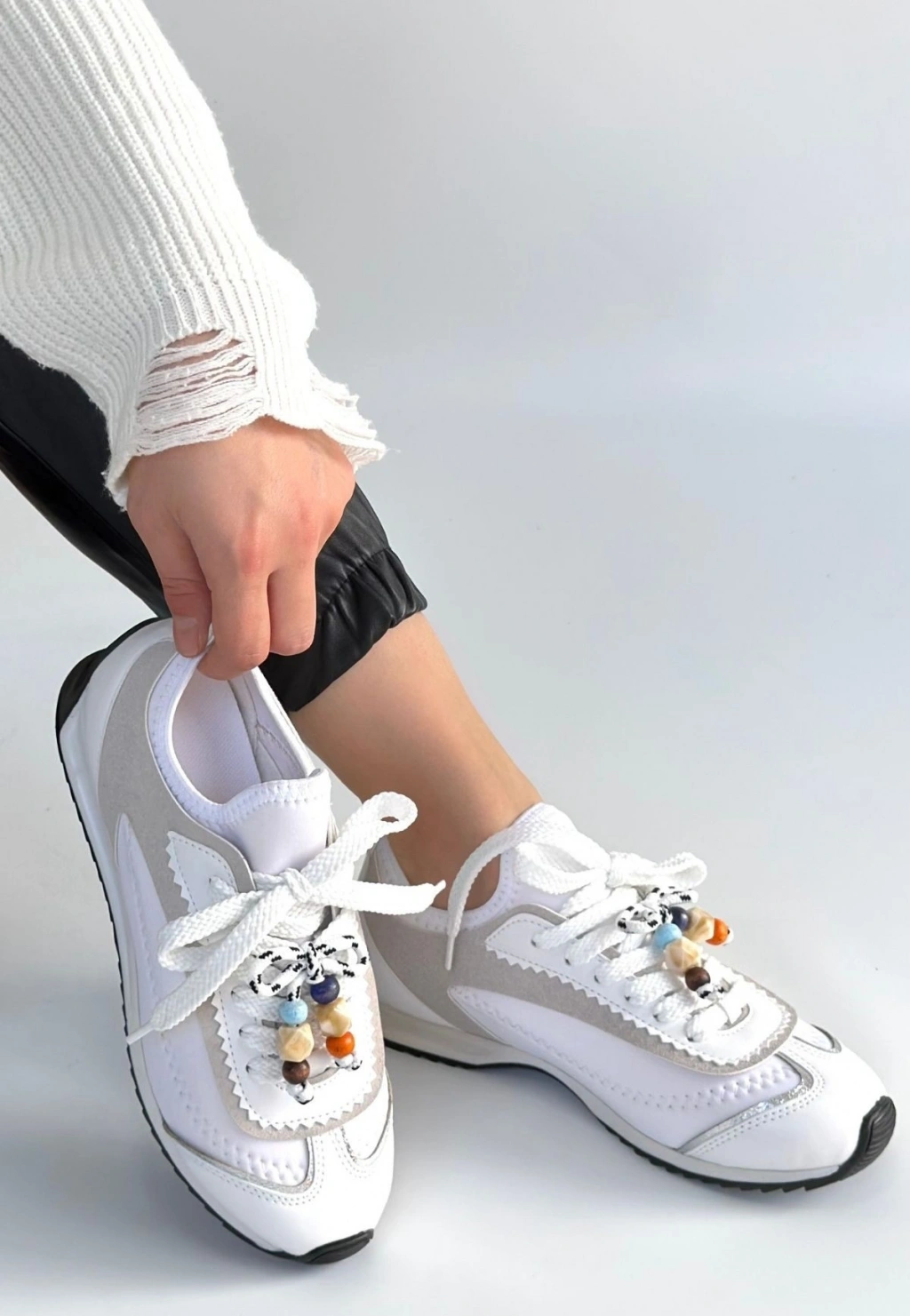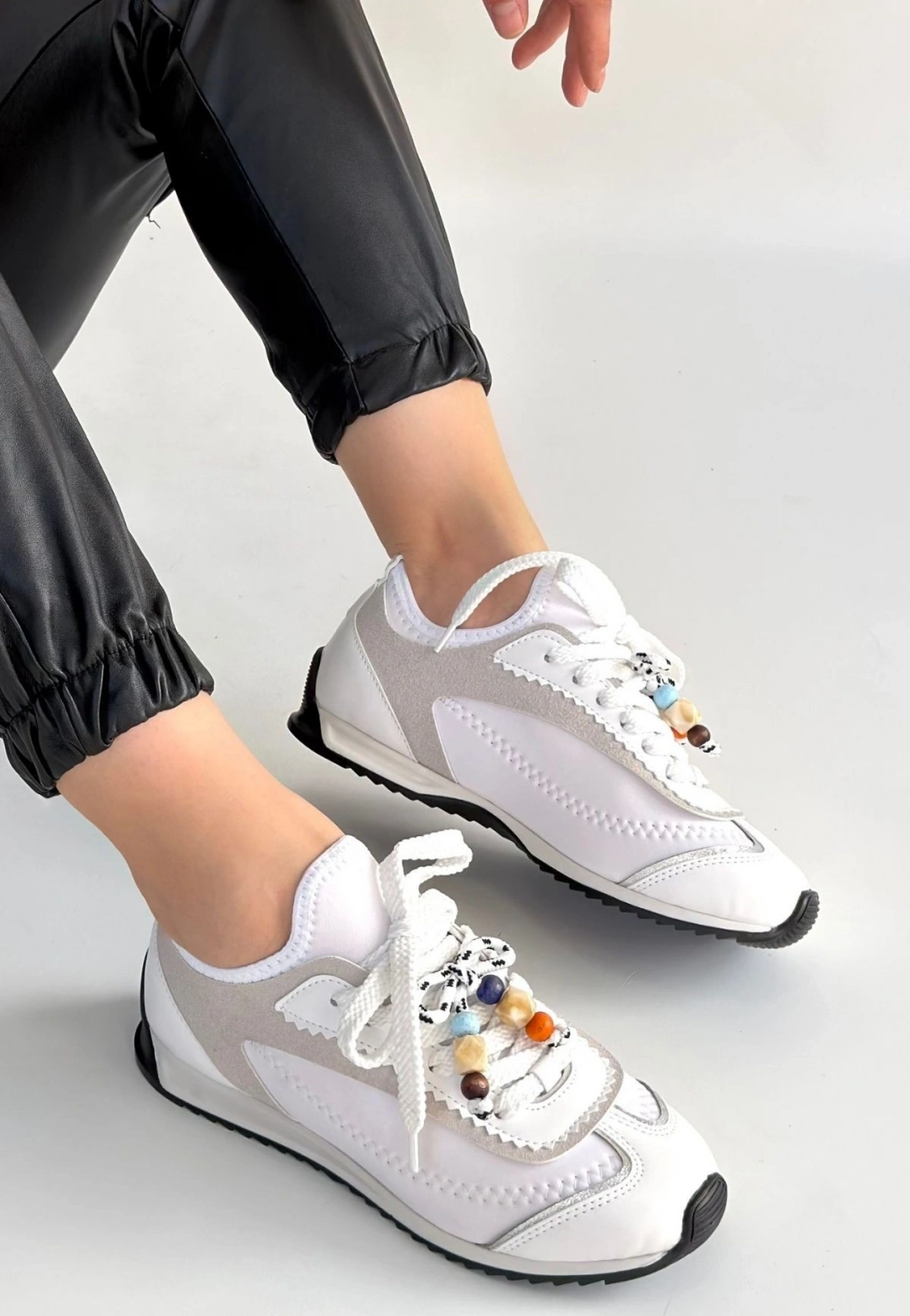Riaf Beyaz Cilt Bağcıklı Spor Ayakkabı
