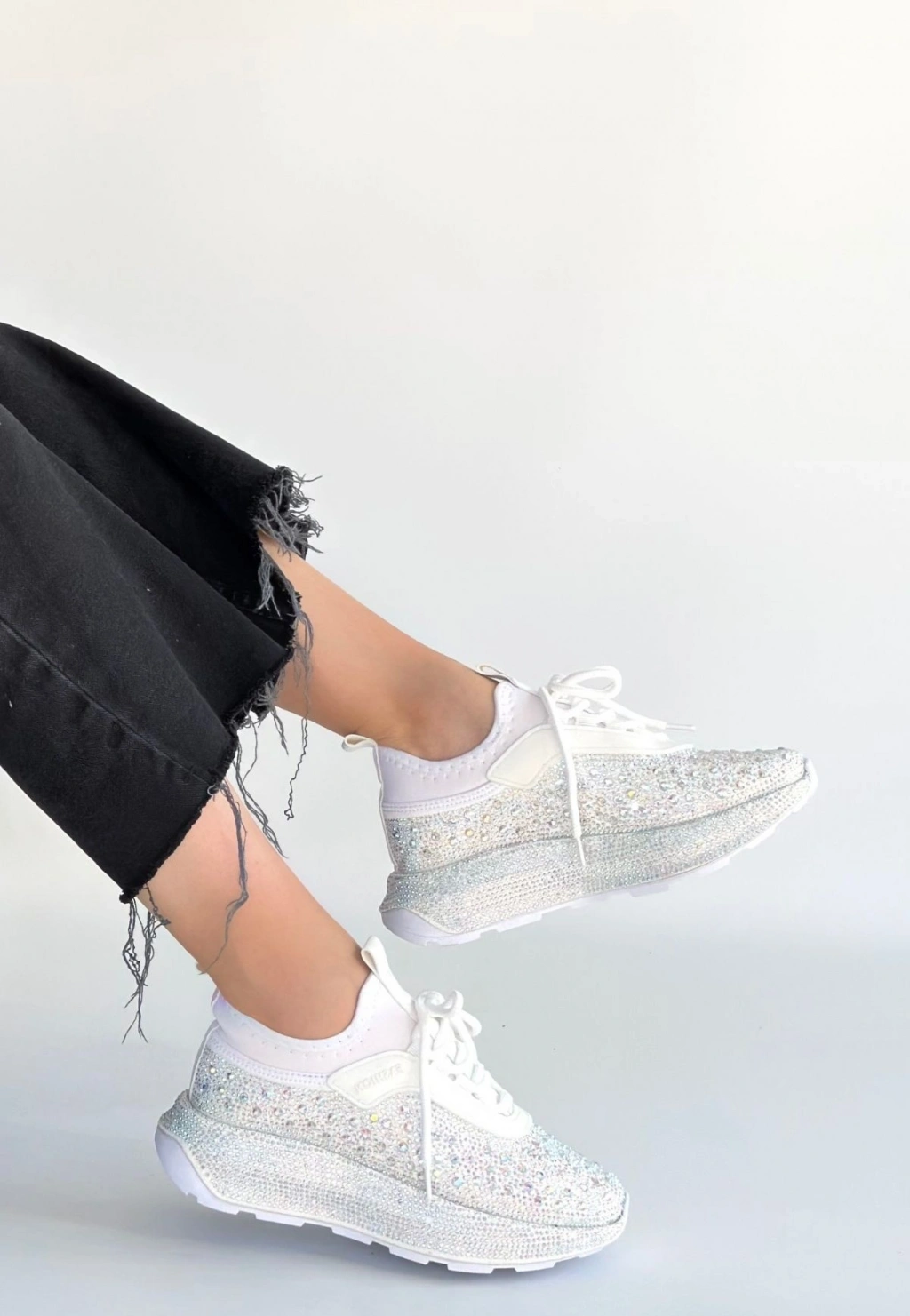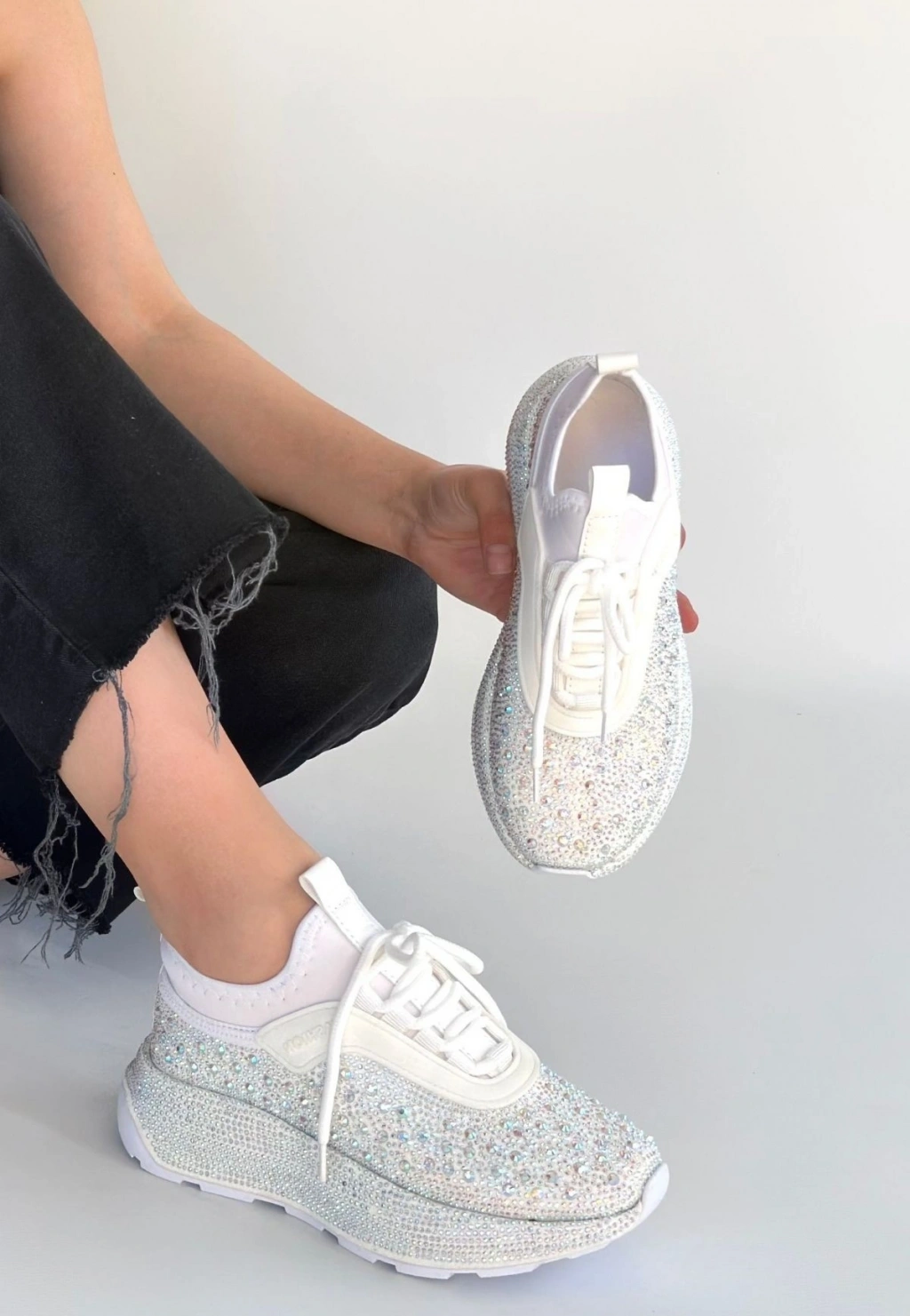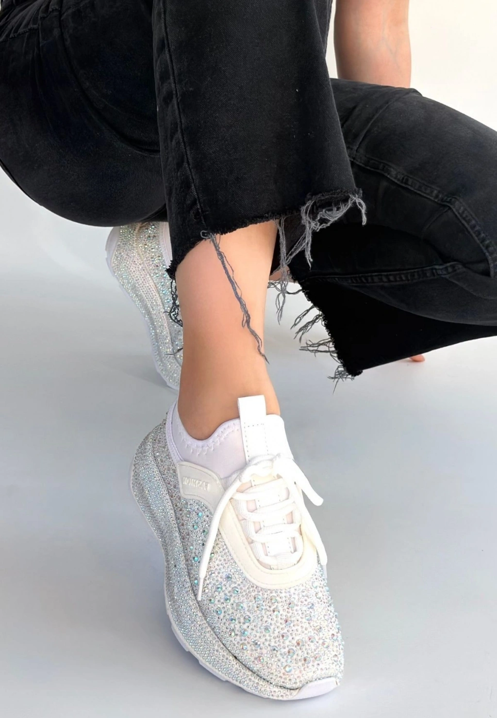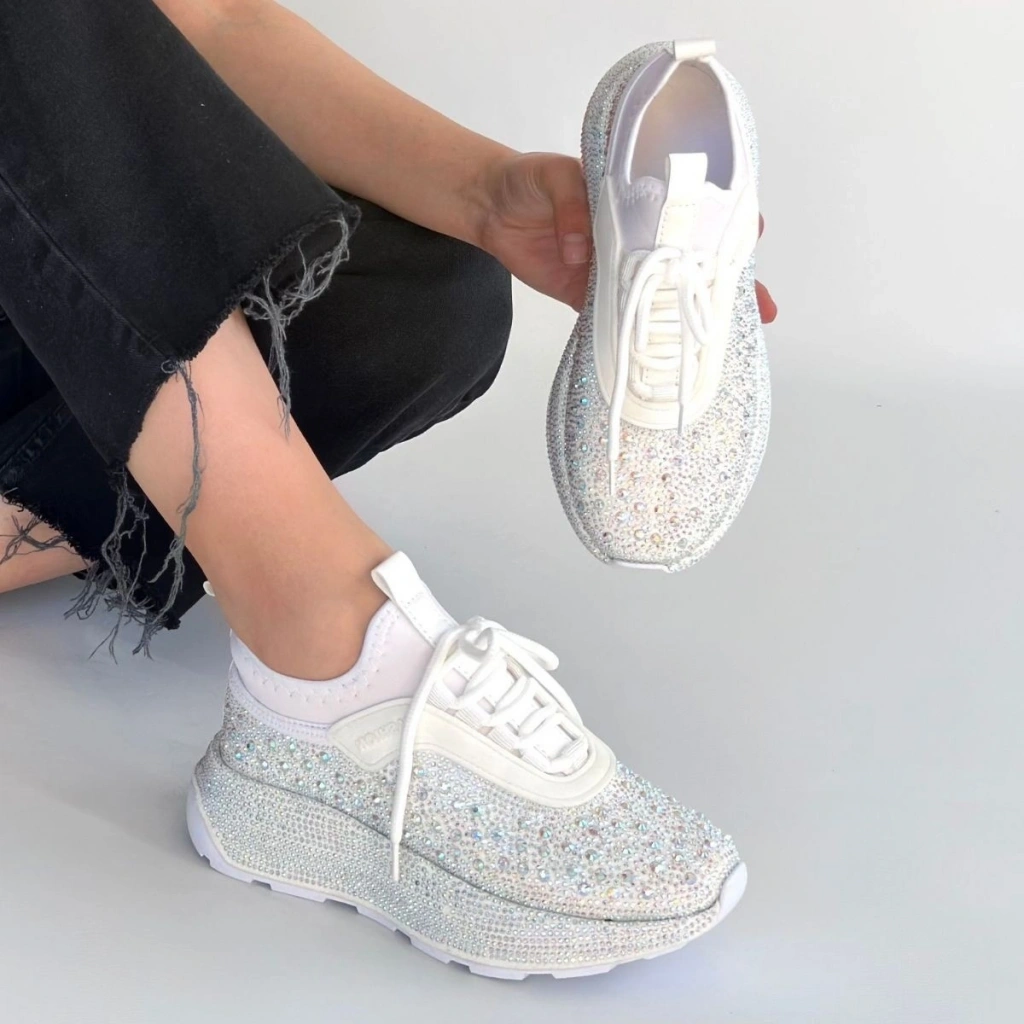 Rimay Beyaz Cilt Boncuk İşlemeli Spor Ayakkabı