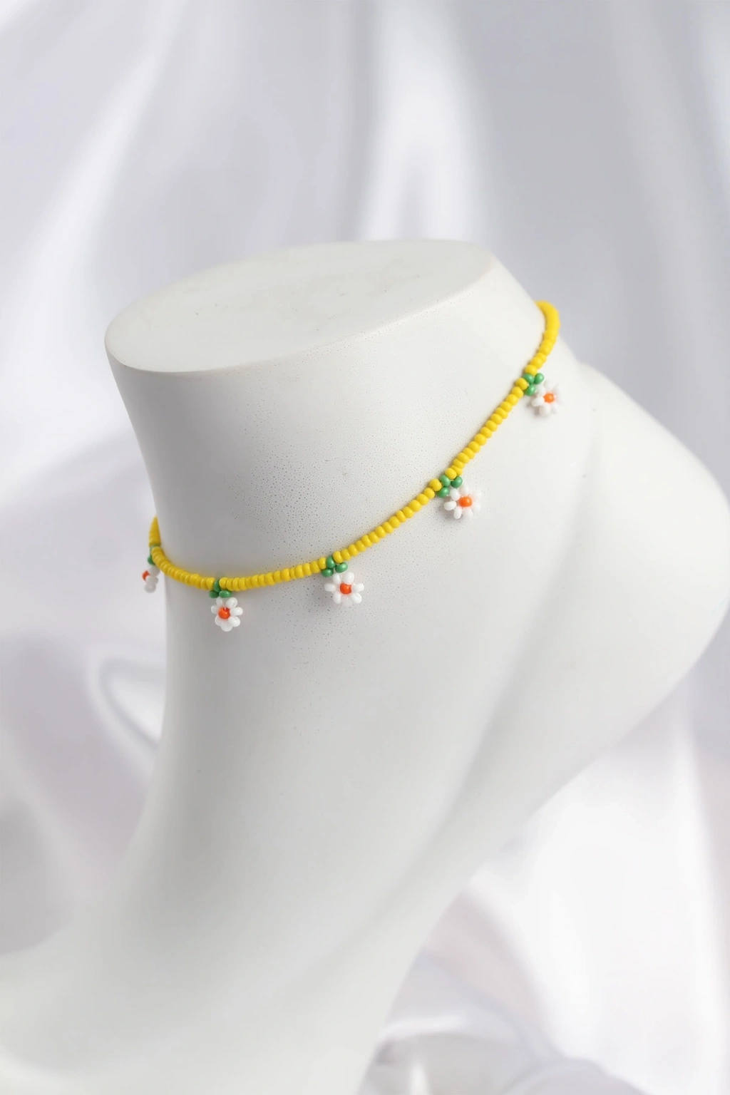 Ürün Özellikleri:Renk: Sarı ve beyaz papatya detaylıMalzeme: Boncuk ve ipAyarlanabilir uzunlukHafif ve rahat kullanımEl yapımı görünüm