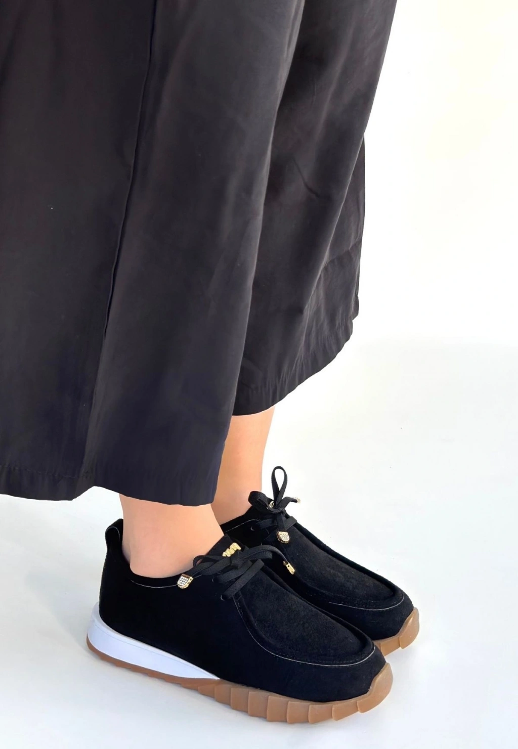 Sier Siyah Süet Bağcıklı Spor Ayakkabı
