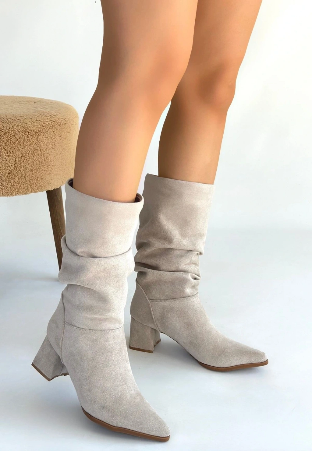 Detay: Topuklu Diz Altı Körüklü Çizme