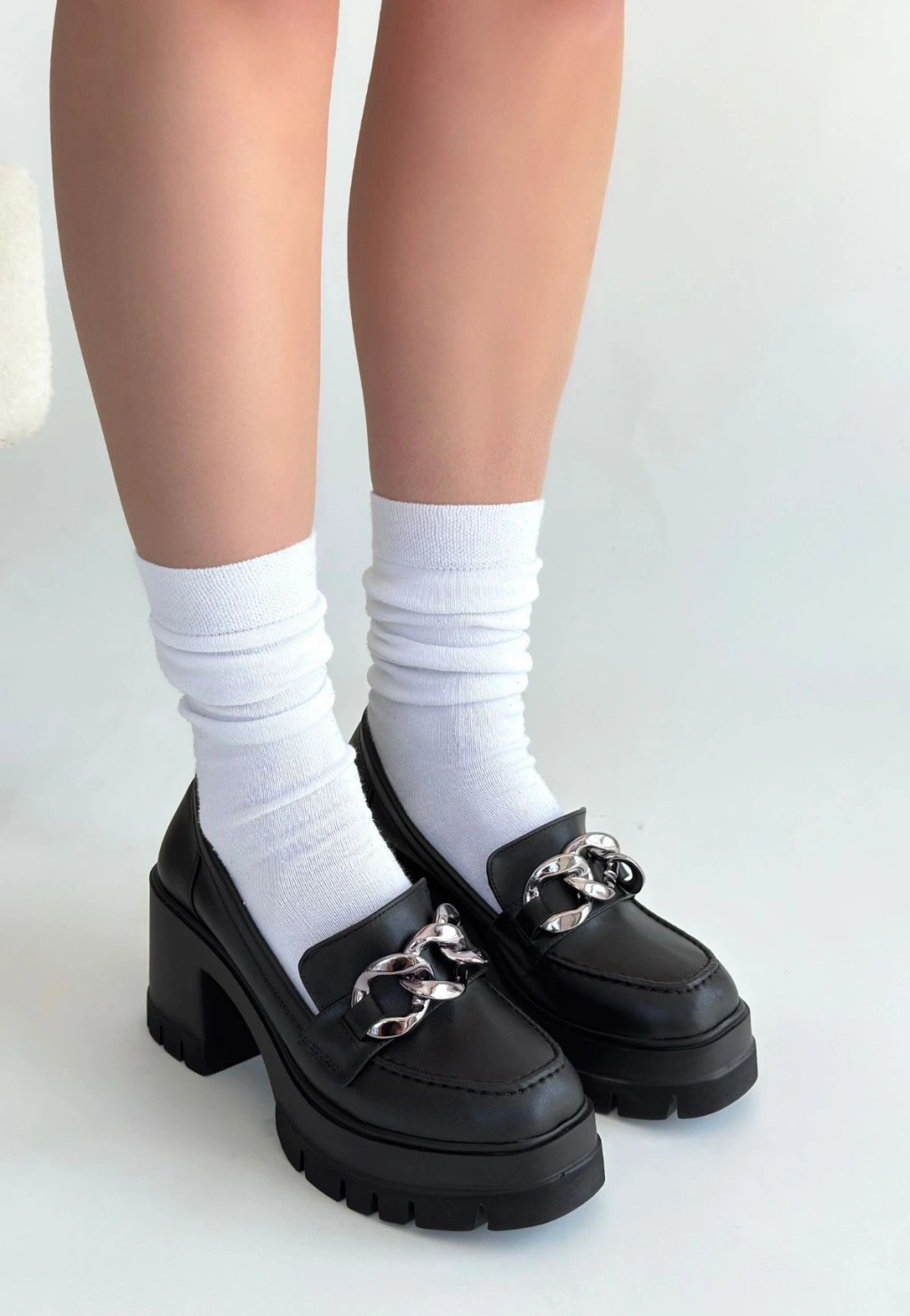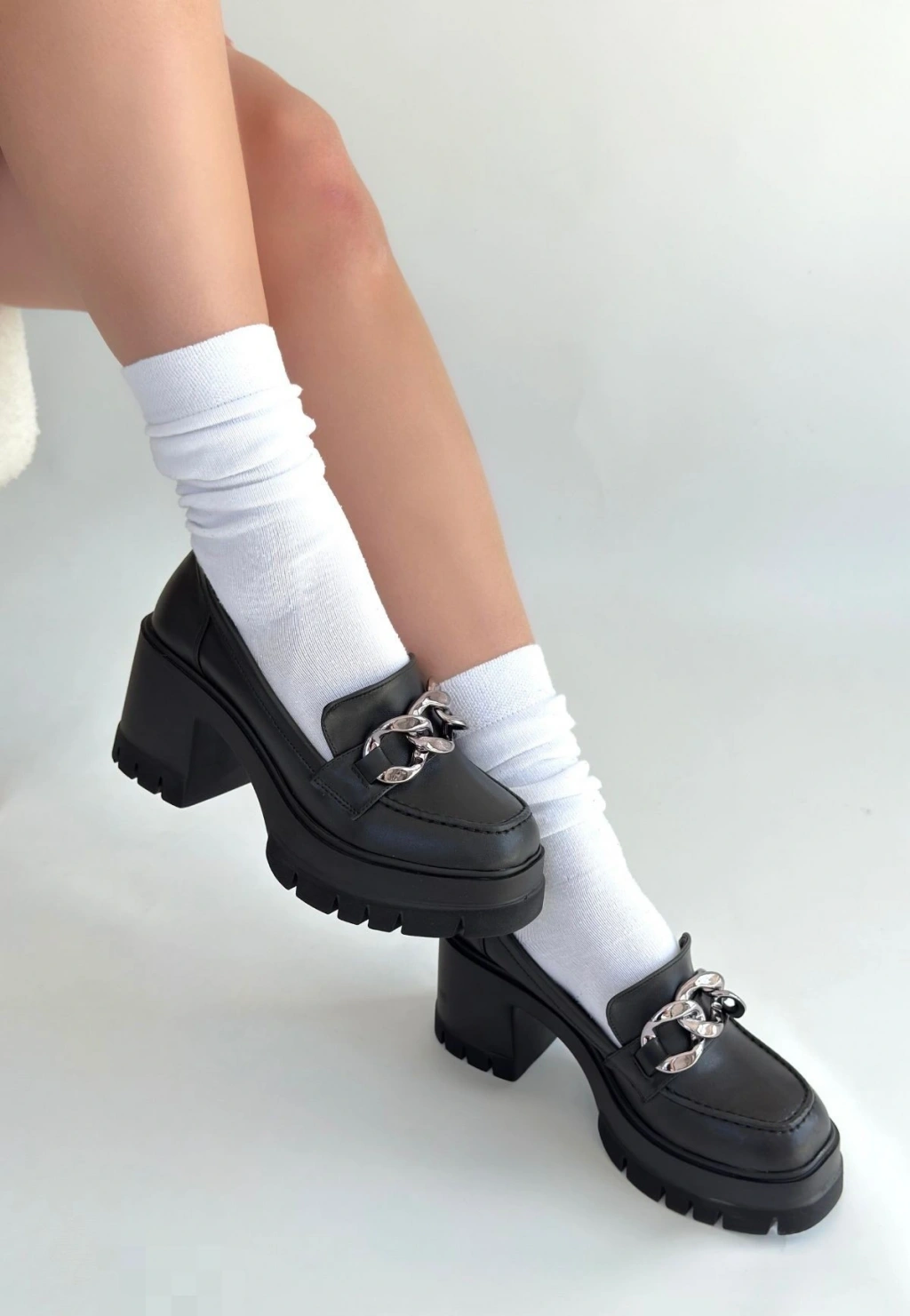Winar Siyah Cilt Doldu Topuk Ayakkabı