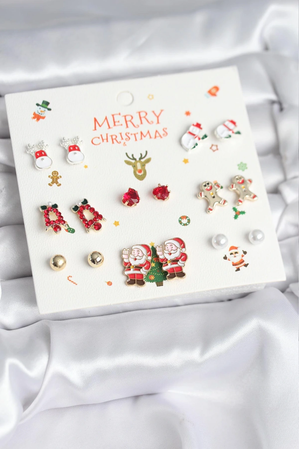 Yılbaşı Temalı Karışık Model 8 Çift Yılbaşı Temalı Kadın Küpe Seti