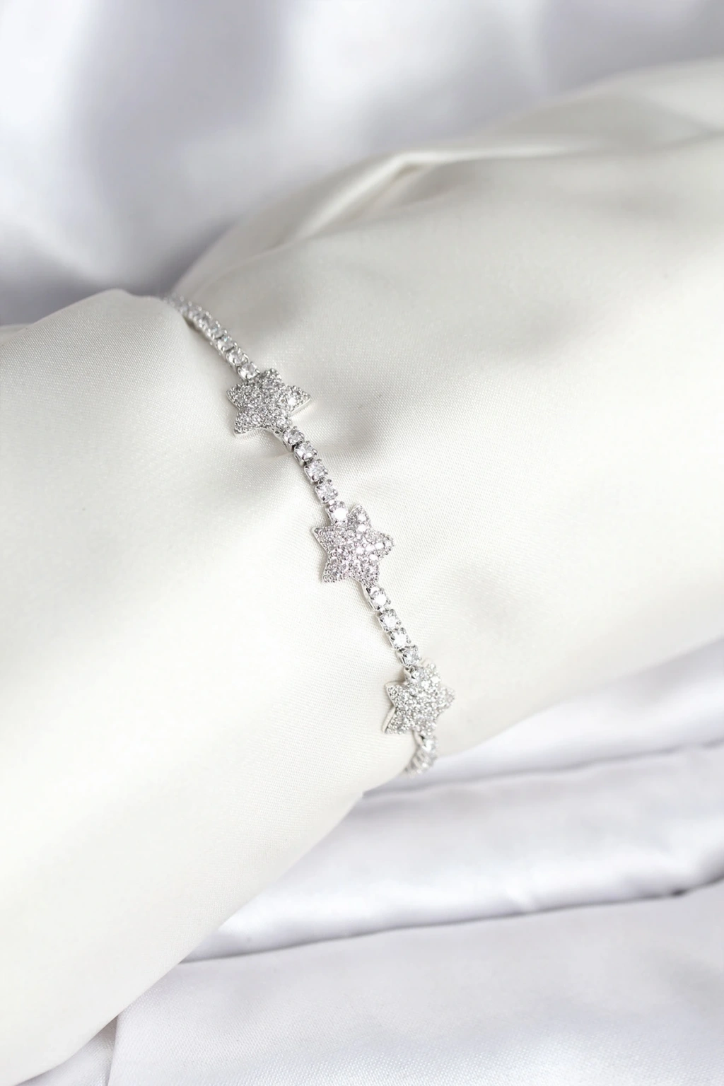 Yıldız Model Zirkon Taşlı Gümüş Renk Pirinç Su Yolu Kadın Bileklik